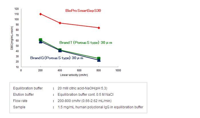 在高流速條件下,BioPro SmartSep填料仍保持高DBC,因此,可以在比常規高2-4倍的流速下進行高速純化,從而極大地提高生産效率。
